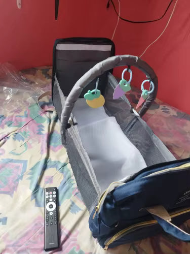 Denne multifunktionelle pusletaske kan laves om til en seng, har isolerede lommer til flasker, en medfølgende puslemåtte, en lomme til vådservietter, en USB-port til opladning af dine enheder og flere rum, der sikrer praktisk og komfortabel brug på dine rejser.