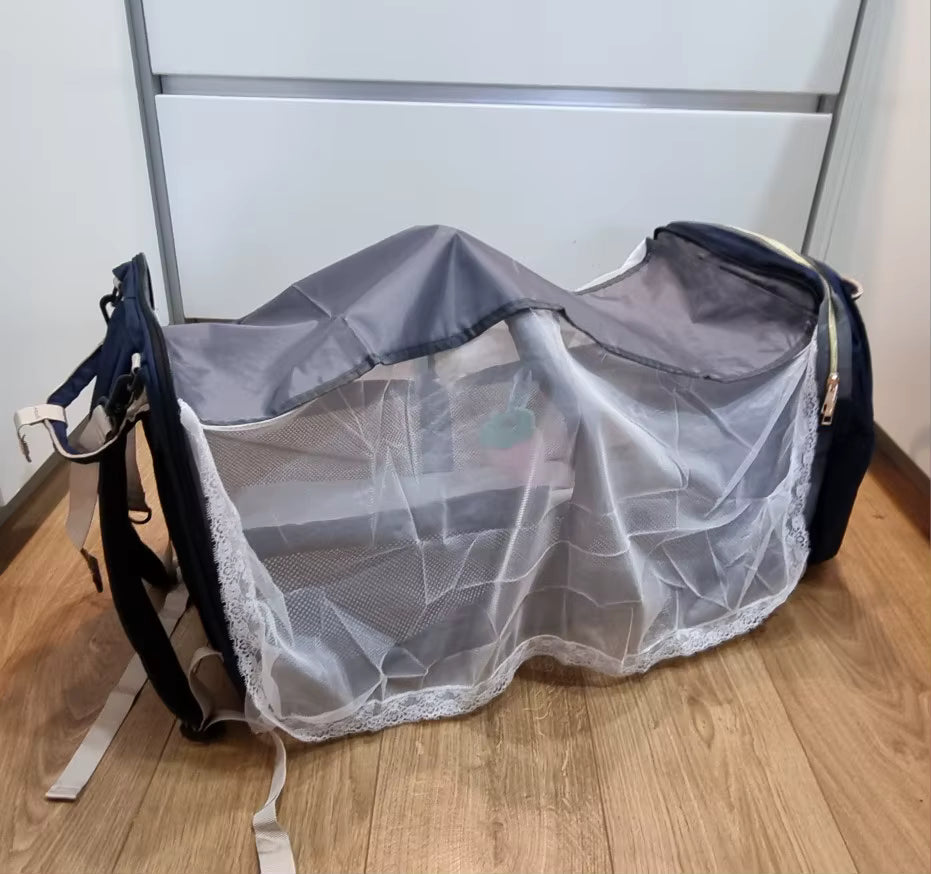 Denne multifunktionelle pusletaske kan laves om til en seng, har isolerede lommer til flasker, en medfølgende puslemåtte, en lomme til vådservietter, en USB-port til opladning af dine enheder og flere rum, der sikrer praktisk og komfortabel brug på dine rejser.